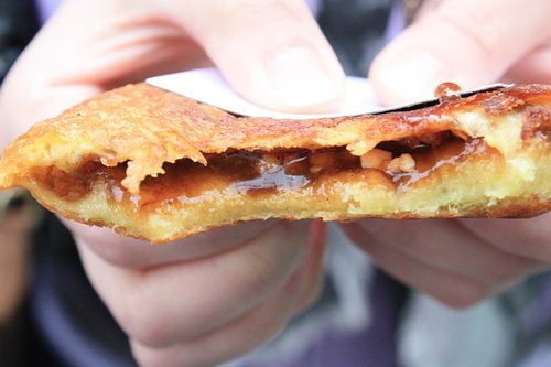 車輪餅來的薄、餡更多,肉桂味濃郁,相當甜,後來才知道這叫【國