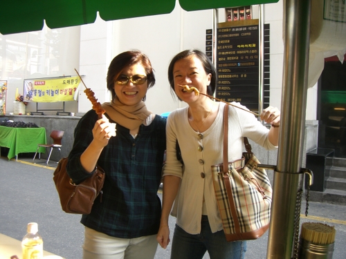 首爾路邊攤的食物,我個人最喜歡烤雞肉串。想想我總共吃過5次