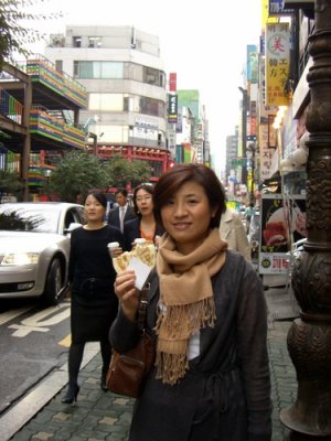 印象最深刻是第二次去首爾,在江南某小巷吃路邊攤,阿朱媽和她