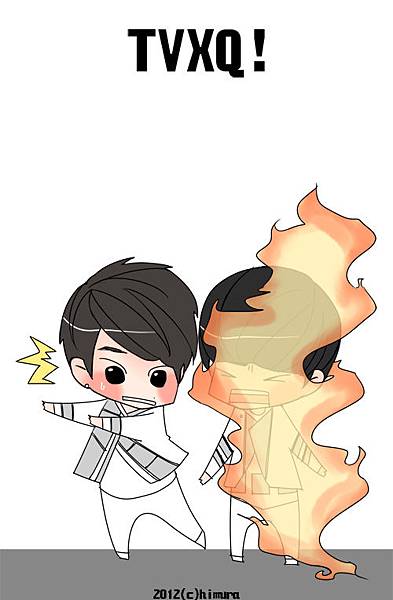 拍的照片,因為角度關係,好像浩珉被火焚身,這張是昌珉被燒,允浩嚇一跳!