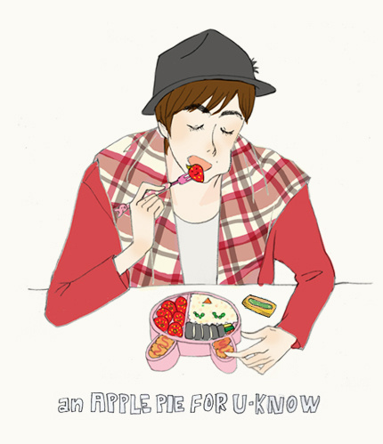 的是,永遠都在吃!這次回歸依然故我,畫的是允浩某次從日本回韓時的機場服裝,吃的是