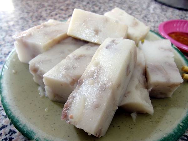 刀工可以再精緻些,片薄一點,免得裡面沒燙熱(雖然芋粿已經是熟的),這樣的切