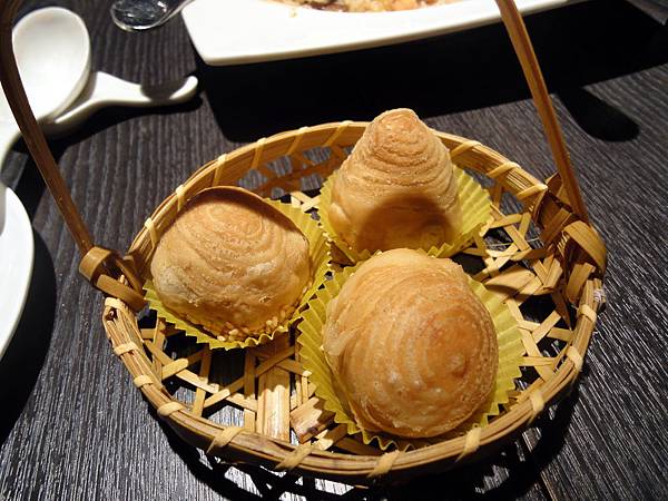 悅品的油炸類點心,一律放在竹籃裡上桌,賣相古椎!