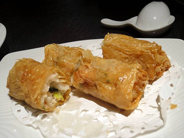 悅品的腐皮捲較粗厚,蝦泥和白韭菜算可口,但腐皮小油膩,