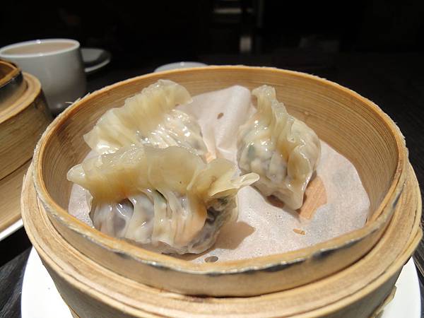 這魚翅餃捏得非常漂亮,皮薄可以透視裡面有蝦子、香菇和蔥花,