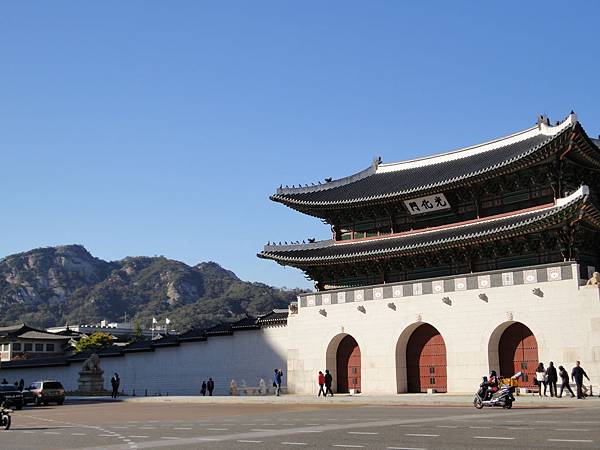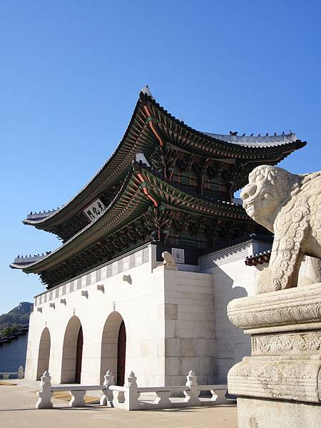 化門就是朝鮮李氏王朝皇宮--景福宮的正門。根據維基百科全書,該城門於1395年