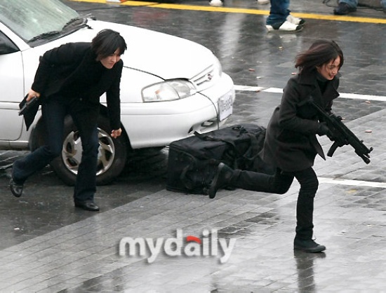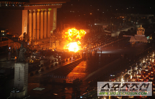 領銜主演,戲中最高潮槍戰和爆破場面,獲准在即將整修開放的光化門十字路口封街拍攝