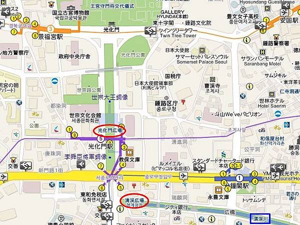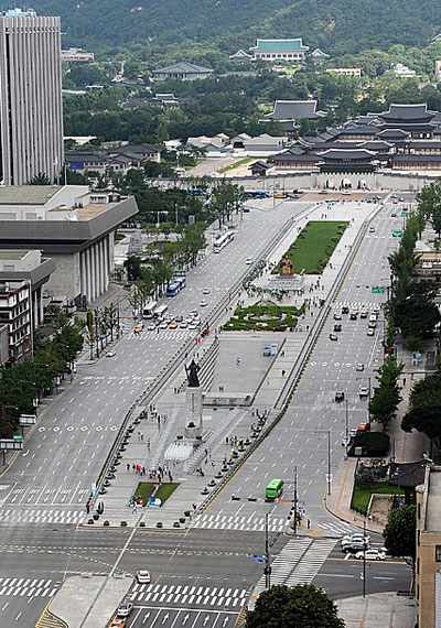 從光化門往清溪川方向是【世宗大路】,沿途經過光化門公園、世宗路公園、世宗大王