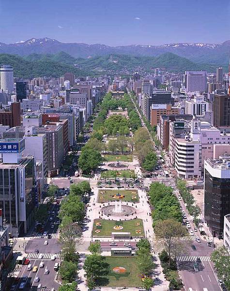 也是貫穿札幌市中心的長條型公園,各色噴水池是其一大特色,林木扶疏,氣氛悠閒