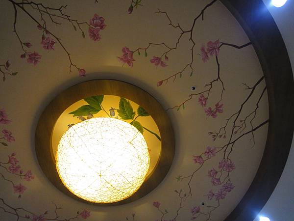 來發現周遭都是睡翻過去的阿朱媽,好有趣,而面對的天花板,是富傳統韓風的燈具(下),
