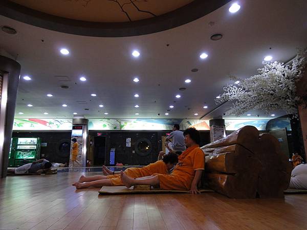搓完澡換了橘色制服上樓到大廳,在這兒可以聊天、睡覺、吃東西、看電視、玩花牌...,韓