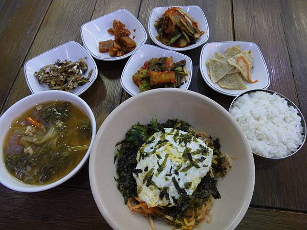 為了避開人潮,我磨蹭到一點多,才進這家韓式家庭料理店,但散客一枚不得不和其他人