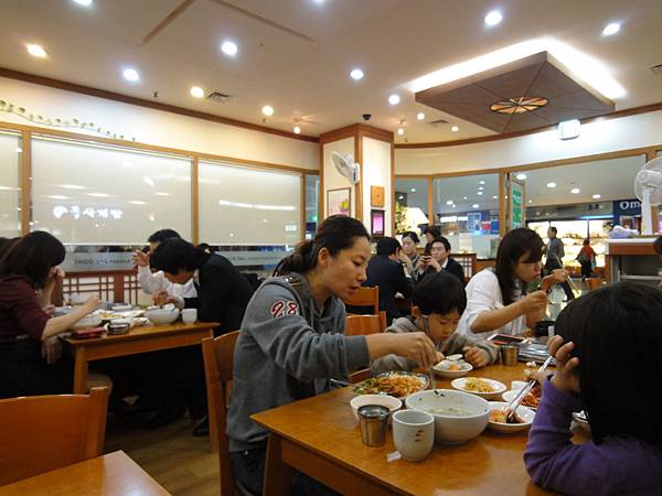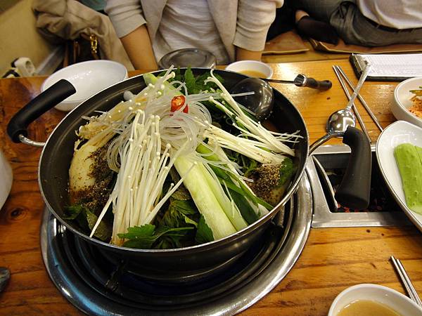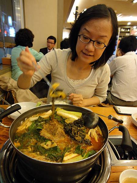 多是去明洞店,我們則在教大店,兩個人點小份的排骨湯,再各加一碗白飯。鍋裡除了