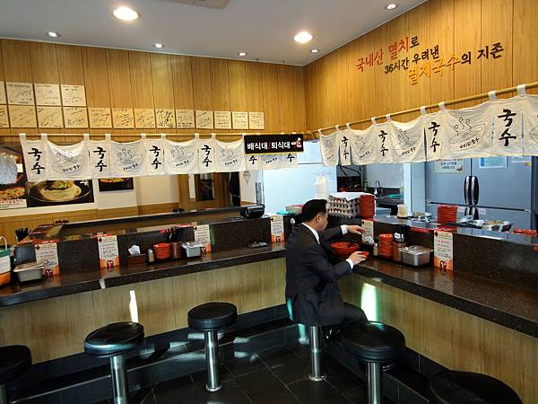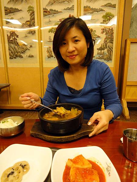 知道牛肉在韓國是奢侈品,價位可不是開玩笑;還好隔壁桌一群男白領正在吸湯飯,