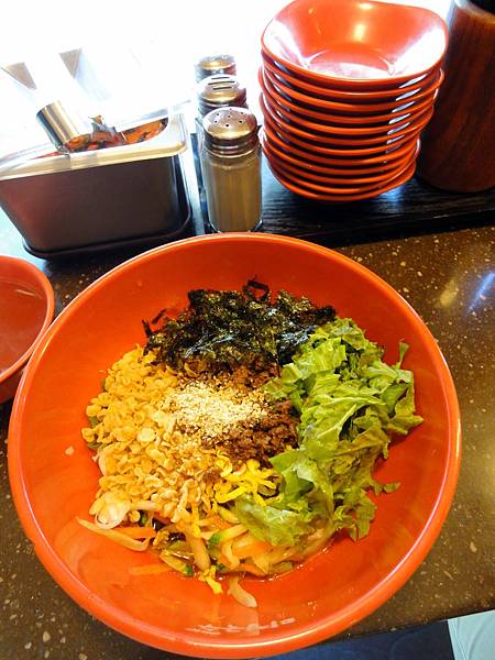我已經忘記點了啥,印象中只記得是乾拌麵,內容有榨菜、肉燥、小黃瓜、小白菜,還