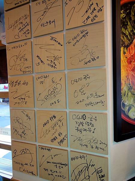 這間店似乎有很多名人光顧,簽名板貼滿整個牆面,明洞有一間號稱平價炒碼麵的【香