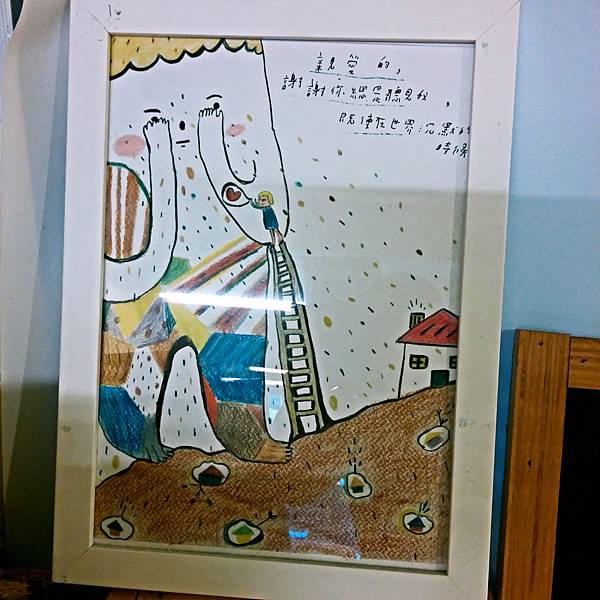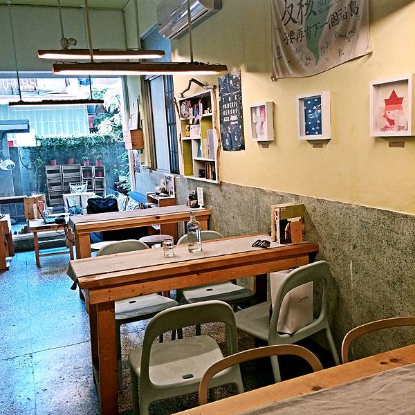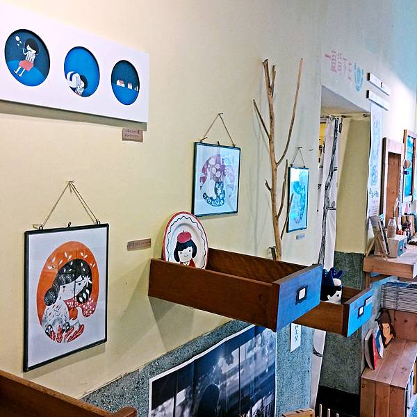 風格,店主人寫了一手好字,到處是她手寫的標示。牆面展示兩三位藝術家作品,手法雖異,共