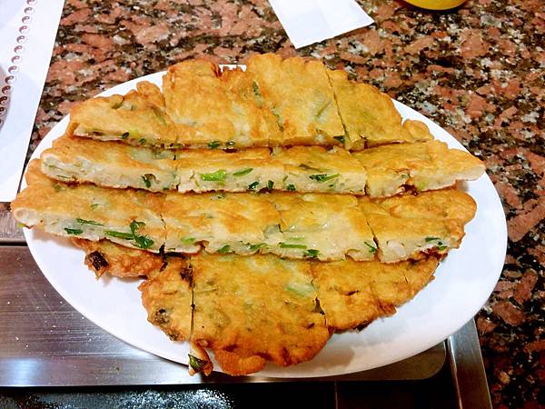 期待已久的煎餅上桌了,《金漢城》的煎餅有原味煎餅(葱煎餅)、泡菜煎餅、海鮮煎餅和綜