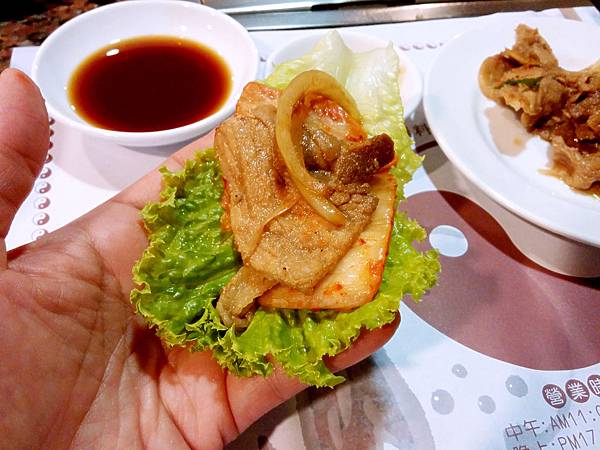 吃法,當然不能少了生菜和泡菜,金漢城的小菜和生菜得另外點,不附贈的,不過生菜大片又