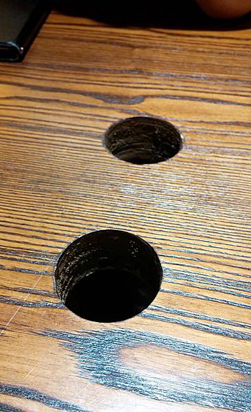 可惜這裡的薯條採杯裝,讓桌上的洞完全派不上用場;