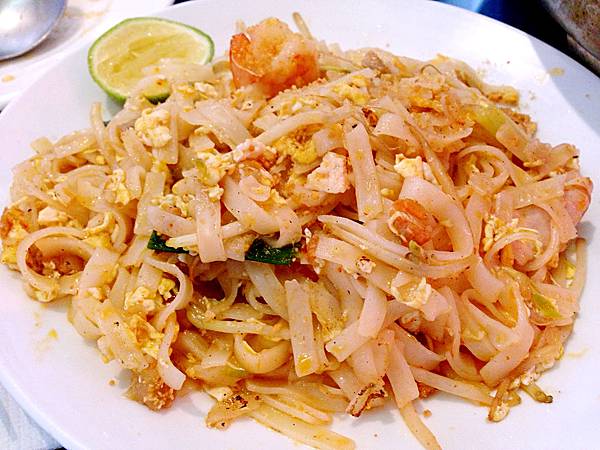 我和小倩點了比較多素菜,涼拌木瓜絲、泰式煎蛋、蝦醬空心菜、泰式河粉(炒素)、