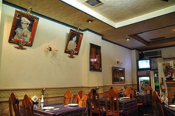 牆上掛著泰王和皇后的玉照,年代有點遠,泰王和皇后還很年輕;