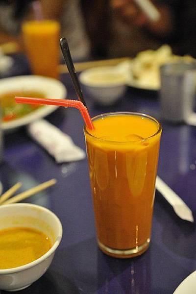 鄰桌好幾人點了這黃黃紅紅的飲料,原來是【泰式奶茶】,
