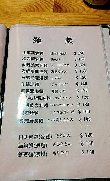 我熱愛麵食,這裡有蕎麥麵、烏龍麵、中華麵,還有義大利麵