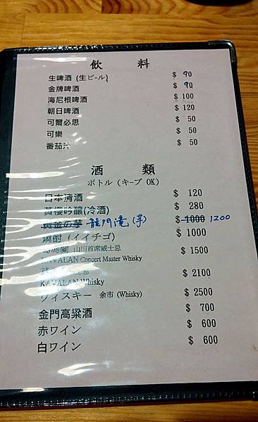 清酒、吟釀、燒肘,還有威士忌、紅白酒、金門高粱