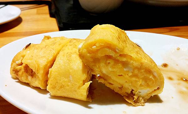 加了高湯的煎蛋捲,中央柔軟滑嫩半熟,