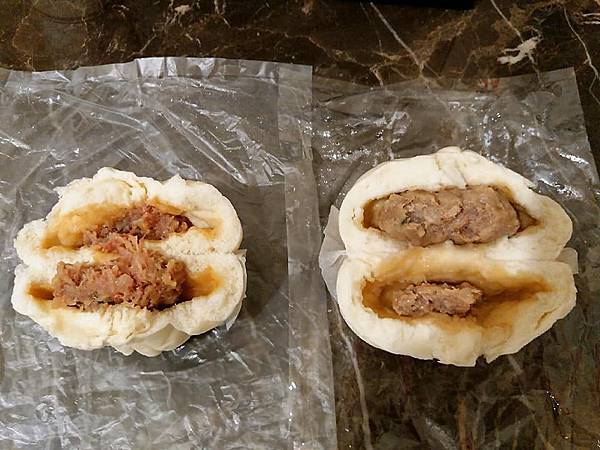 左是老龍師肉包,右是阿振肉包,出爐不是這樣的,是被我